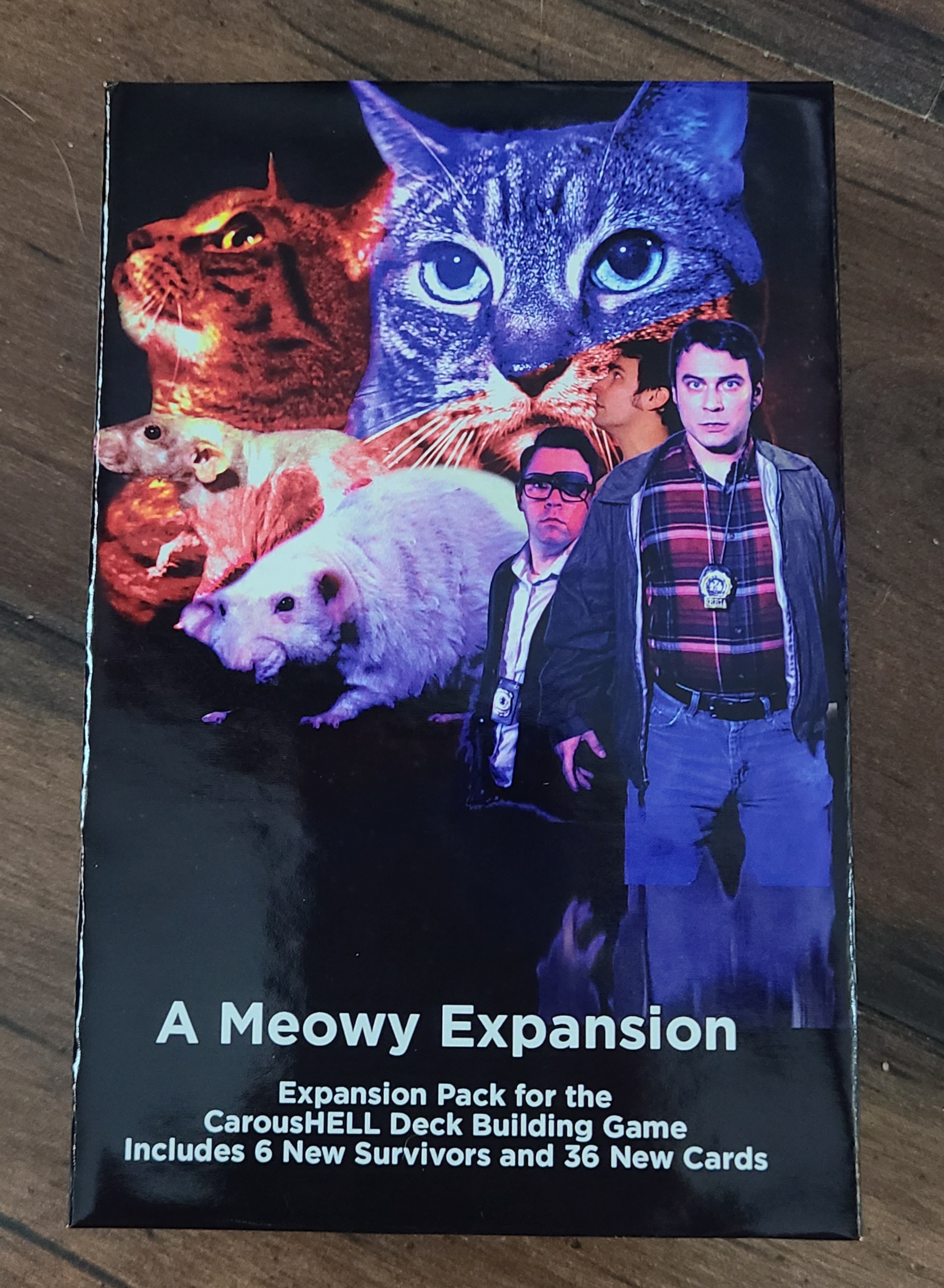 An expansion for the CarousHELL Deck Building Game that focuses exclusively on the Meowy Chronicles. A Meowy Christmas, A Meowy Halloween, A Meowy St. Patrick's Day, A Meowy Christmas Vacation, and A Meowy Dark Timeline are all in this box!
